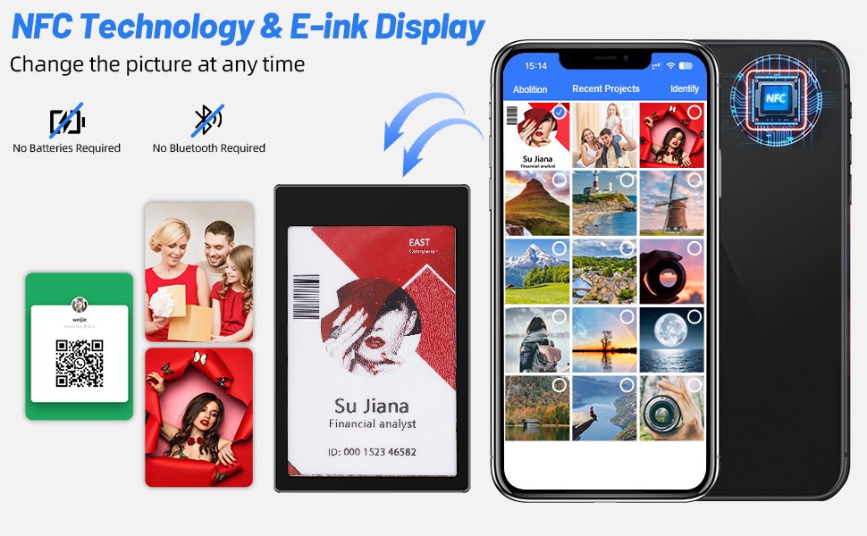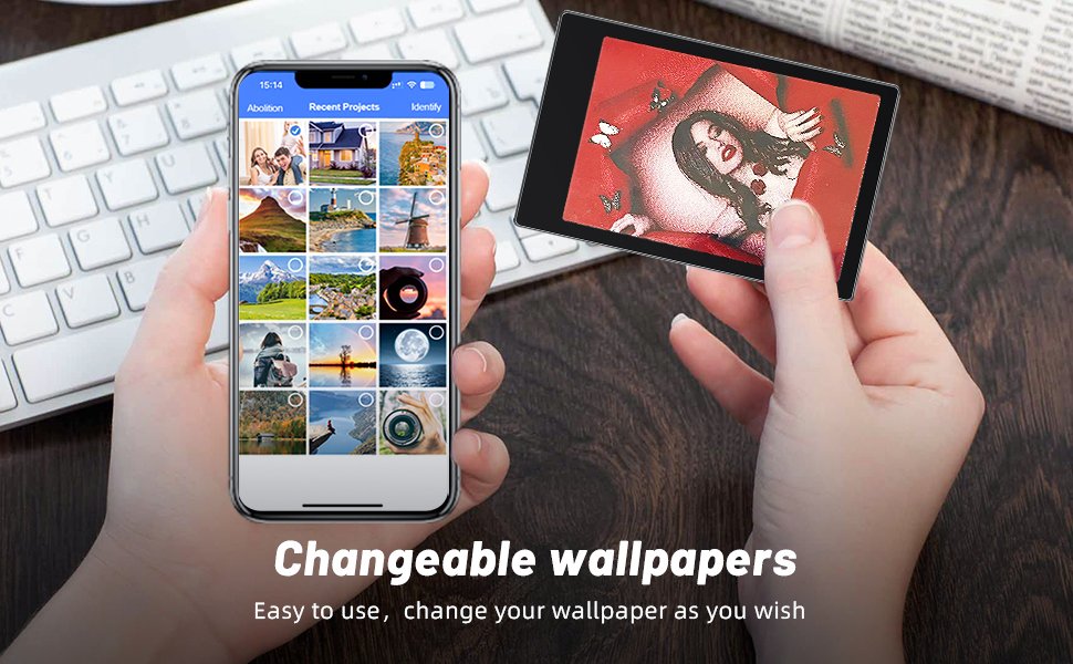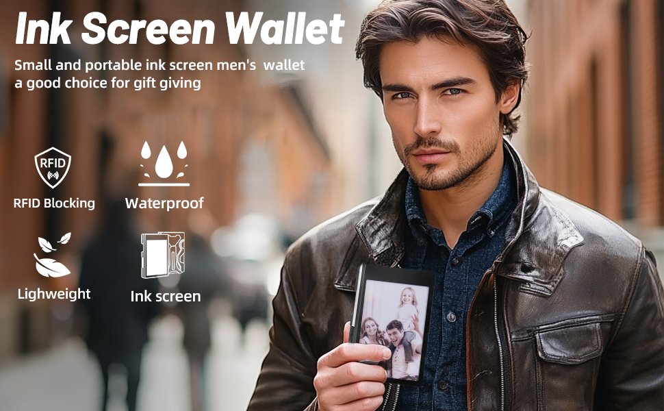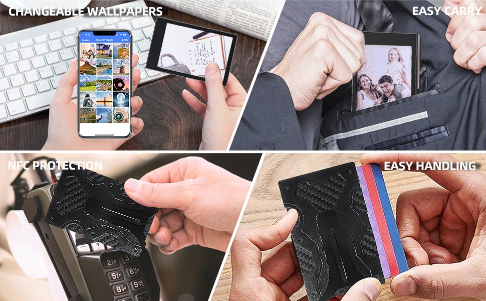 New technology: The outside of the card holder is an ink screen with NFC transmission function. You can use the mobile phone APP to change different wallet backgrounds. It does not need to be charged, and the screen picture is permanently visible. Not limited by power supply.